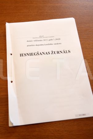 Rīgas pilsētas Vēlēšanu komisijas locekles pārbauda pirmo iesniegto ...