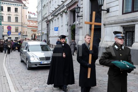 Atvadīšanās ceremonijas laikā no izcilās latviešu kordiriģentes ...