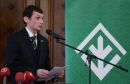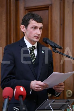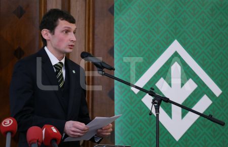 Latvijas Zaļās partijas līdzpriekšsēdētājs Viesturs Silenieks uzrunā ...