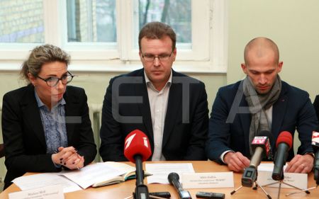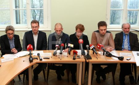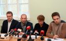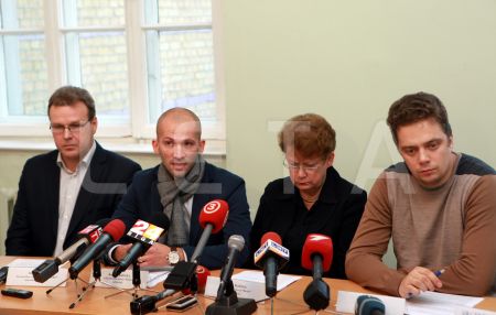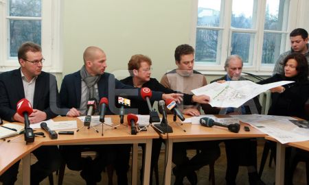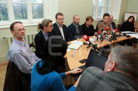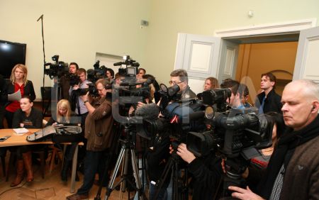 Notiek preses konference, kurā sabrukušā veikala "Maxima" būvprojektā ...