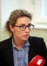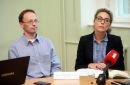 Būvfirmas "Re&Re" pārstāve Mārīte Straume piedalās preses konferencē, ...