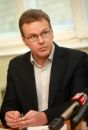 Būvuzraugs Valters Celmiņš piedalās preses konferencē, kurā sabrukušā ...