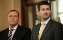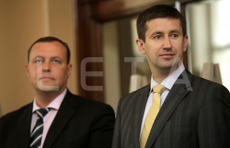 Ekonomikas ministrs Daniels Pavļuts (no kreisās) un iekšlietu ...
