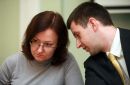 Izglītības un zinātnes ministrs Vjačeslavs Dombrovskis (no kreisās) ...