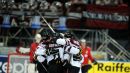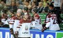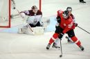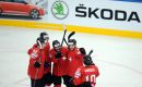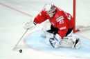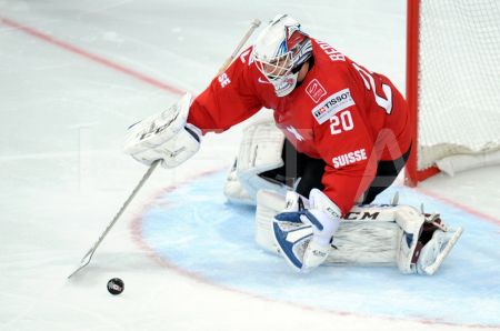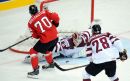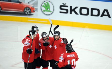 Šveices hokeja izlases spēlētāji priecājas par gūtajiem vārtiem ...