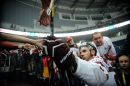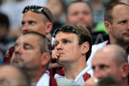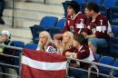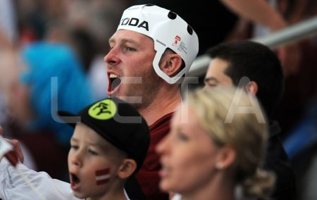 Hokeja fani Pasaules čempionāta spēlē hokejā starp Latvijas un ...