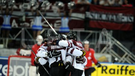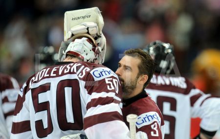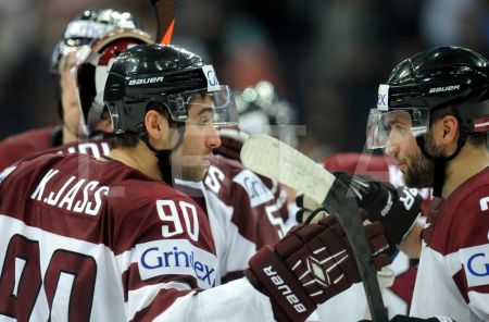 Tiesniesis un Latvijas hokeja izlases spēlētāji Pasaules čempionāta ...