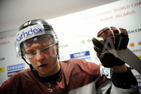Latvijas hokeja izlases spēlētājs Kristaps Sotnieks pēc Pasaules ...
