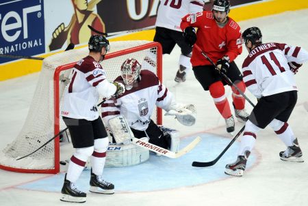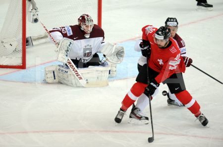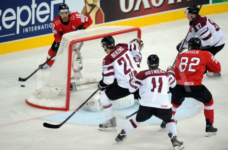 Pasaules čempionāta spēle hokejā starp Latvijas un Šveices ...