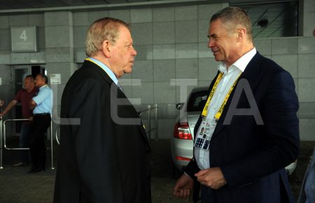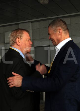 Latvijas hokeja federācijas prezidents Kirovs Lipmans (no kreisās) un ...