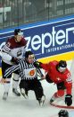 Latvijas hokeja izlases spēlētāji Koba Jass (nr.90,balts) un Māris ...