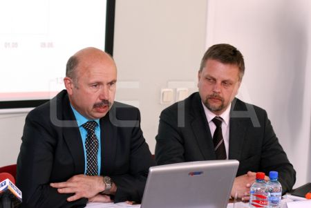 AS "Rīgas siltums" valdes priekšsēdētājs Normunds Talcis (no kreisās) ...