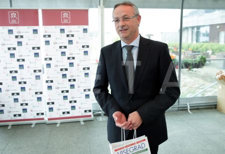 Ungārijas vēstnieks Latvijā Gābors Dobokajs (no kreisās) un Latvijas ...
