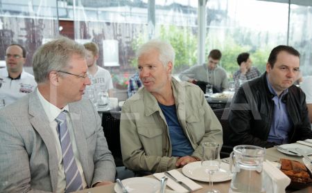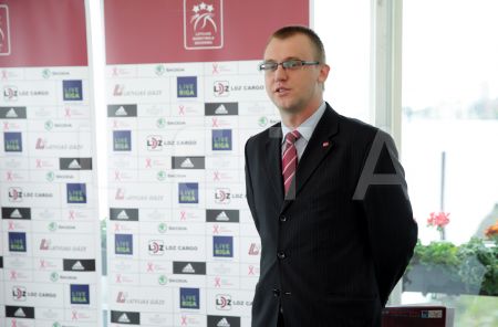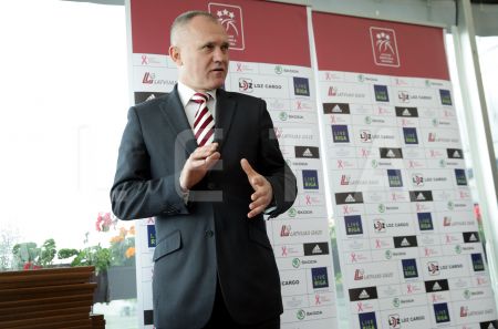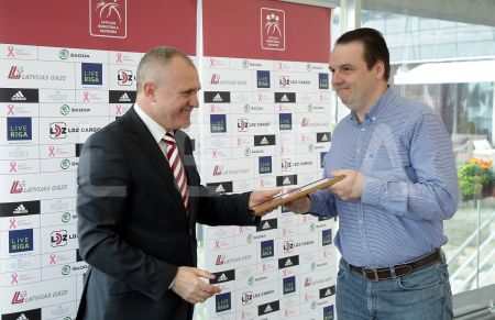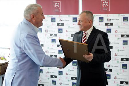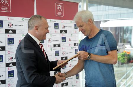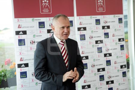 Latvijas Basketbola savienības prezidents Valdis Voins (no labās) ...