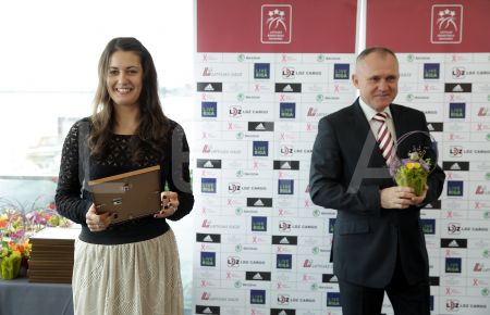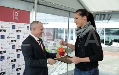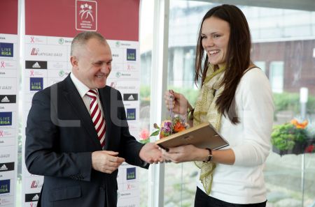 Latvijas sieviešu basketbola valstsvienības kapteine Ieva Krastiņa un ...