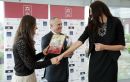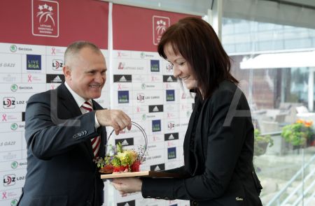 Latvijas Basketbola savienības prezidents Valdis Voins sveic Latvijas ...
