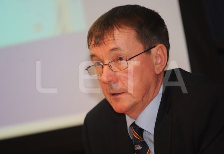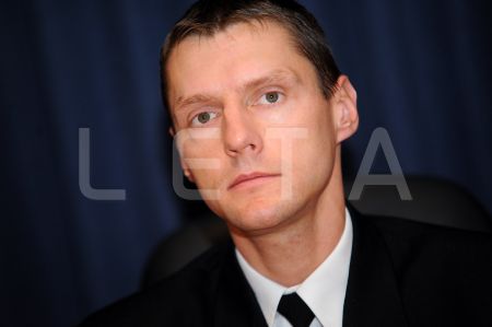 Nacionālo bruņoto spēku pārstāvis Tālis Dzērve piedalās preses ...