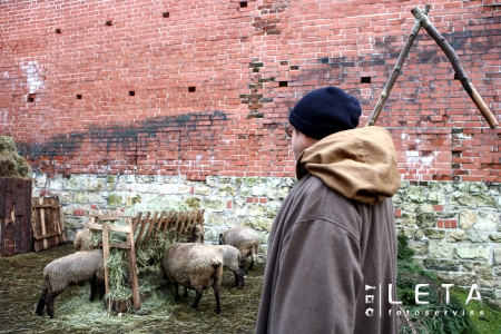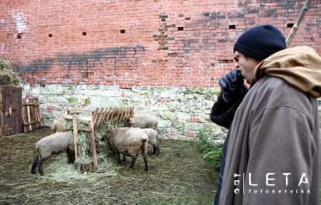 Bētlemes ainas inscinējums - gans ar aitām pie Jēkaba kazarmām.