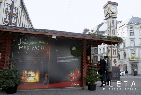 AS "Laima" Ziemassvētku kārumu namiņš pie Laimas pulksteņa.