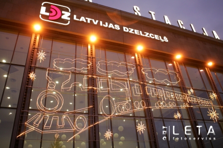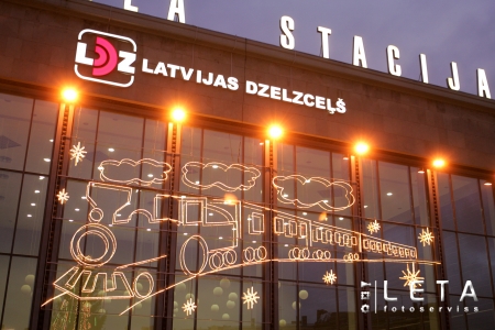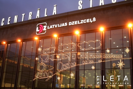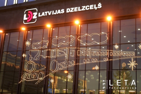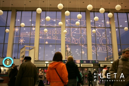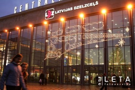 Rīgas centrālajā dzelzceļa stacija Ziemassvētku rotā.