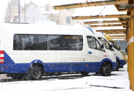 "Rīgas satiksme" maršruta mikroautobusi galapunktā Stacijas laukumā.