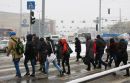 Cilvēki maršruta mikroautobusu galapunktā Stacijas laukumā.