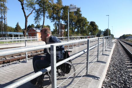 Invalīds retiņkrēslā piedalās pasākumā, kurā "Latvijas Dzelzceļš" ...