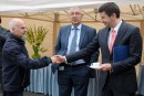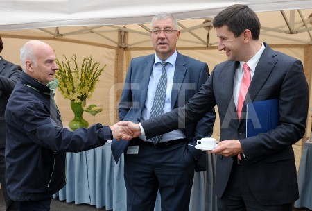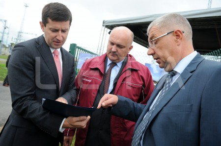 Ekonomikas ministrs Vjačeslavs Dombrovskis (no labās) un AS "Latvijas ...