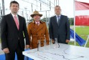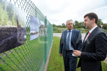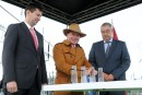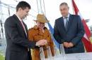 Ekonomikas ministrs Vjačeslavs Dombrovskis (no kreisās), Ventspils ...