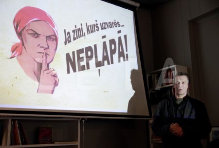Projekcija "Ja zini, kurš uzvarēs... nepļāpā!" preses konferencē, ...