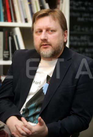 Literāts Andris Akmentiņš piedalās preses konferencē, kurā paziņo ...