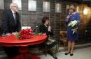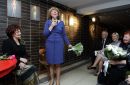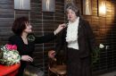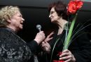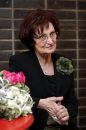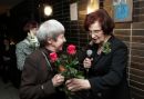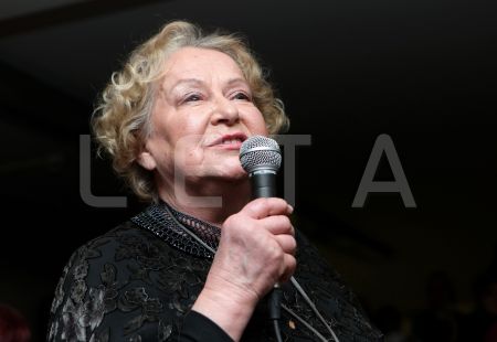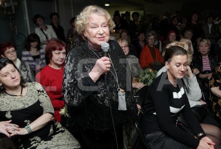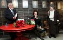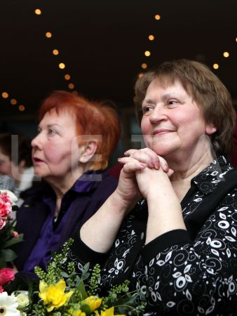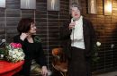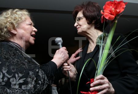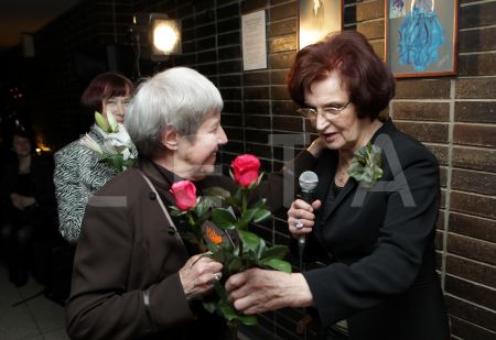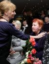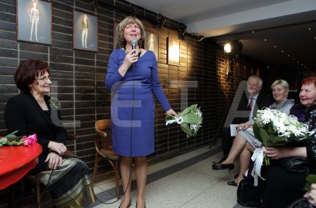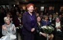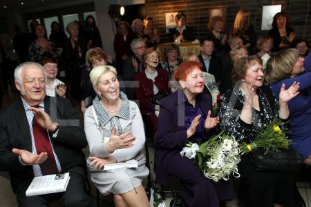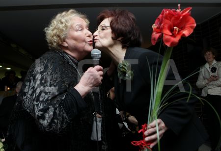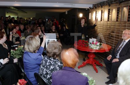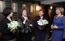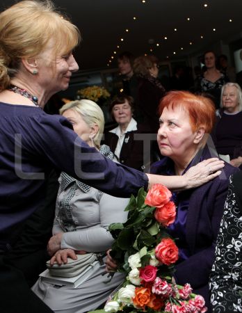Aktrise Olga Dreģe (no labās) tiek sveikta viņai veltītās grāmatas ...