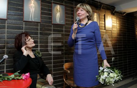 Aktrise Olga Dreģe (no kreisās) un "Apgāda Zvaigzne ABC" valdes ...