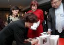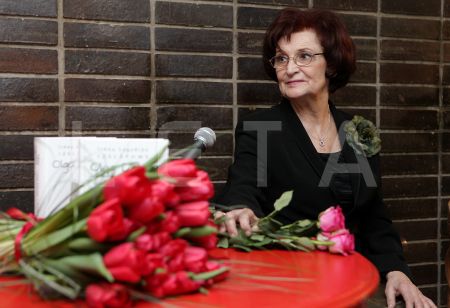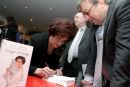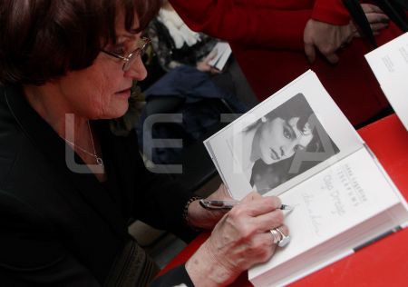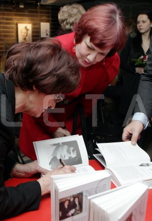 Aktrise Olga Dreģe sniedz autogrāfus viņai veltītās grāmatas ...