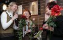 Aktrise Olga Dreģe (no kreisās) sniedz autogrāfus viņai veltītās ...