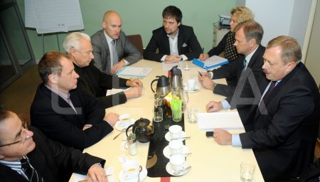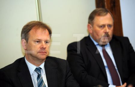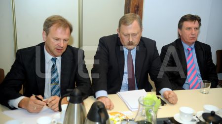 Ekonomikas ministrs Daniels Pavļuts (no kreisās), Rīgas pilsētas ...