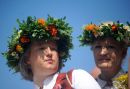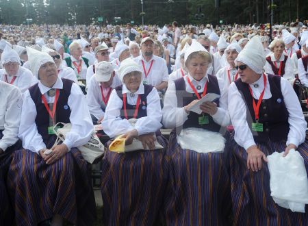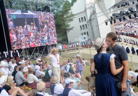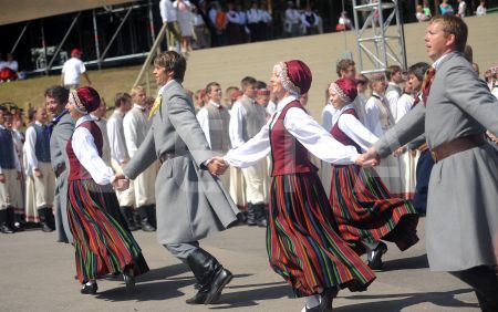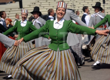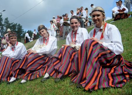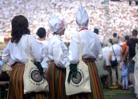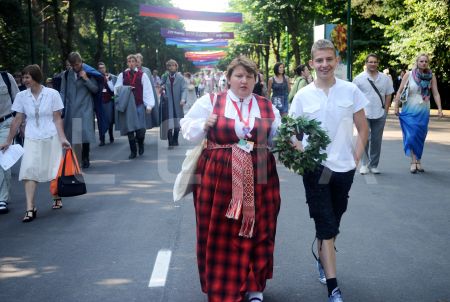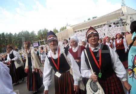 Cilvēki dodas uz XXV Vispārējo latviešu dziesmu un XV Deju svētku ...
