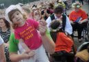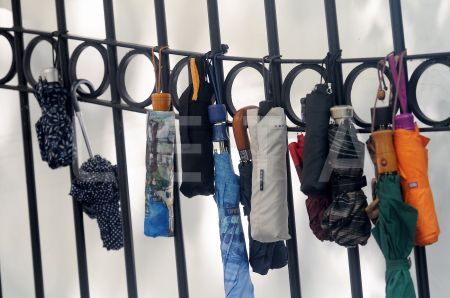 Lietussargi pie ieejas Mežaparka Lielajā estrādē uz XXV Vispārējo ...