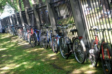 Velosipēdi pie ieejas Mežaparka Lielajā estrādē uz XXV Vispārējo ...