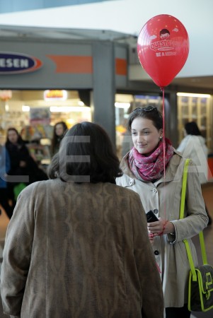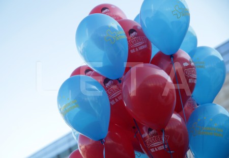 Pirmai Palīdzības dienai veltītie baloni debesīs virs Rīgas Centrālās ...
