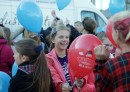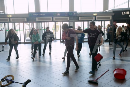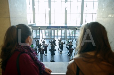 Pie Rīgas Centrālās stacijas notiek bērnu priekšnesums, kas veltīts ...