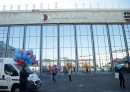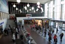 Cilvēki Rīgas Centrālās stacijas 1.stāva Centrālajā zālē, kur notiek ...