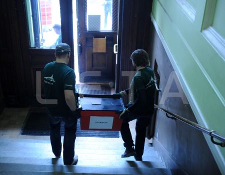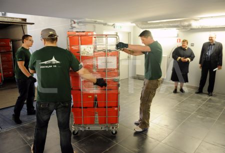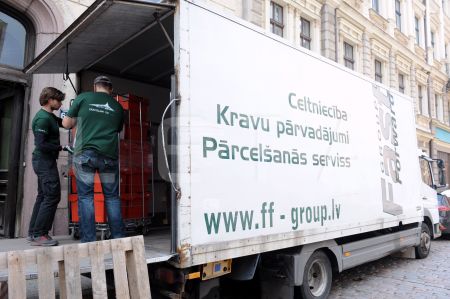 Kravas automašīna ar Latvijas Nacionālās bibliotēkas Reto grāmatu un ...