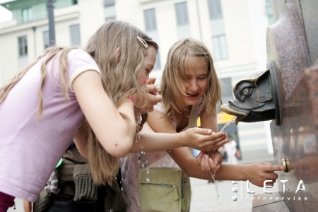 Bērni pie strūklakas Esplanādē.