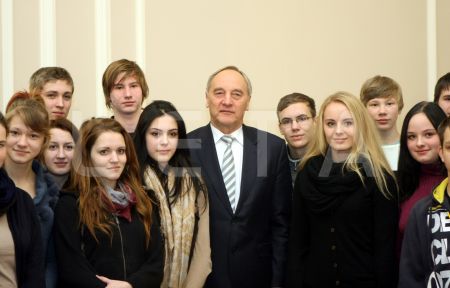 Valsts prezidents Andris Bērziņš ar Ozolnieku vidusskolas skolēniem, ...