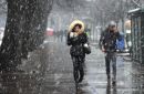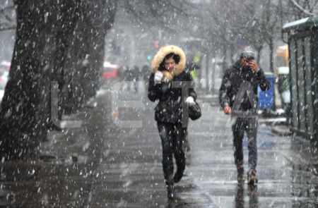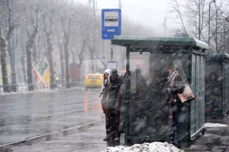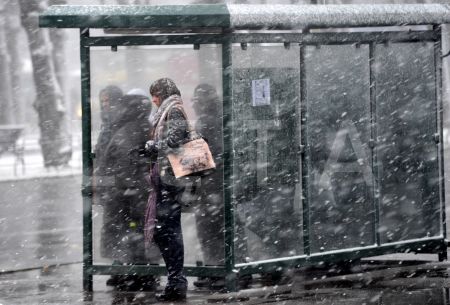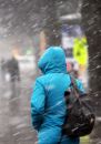 Cilvēki sniegputenī.