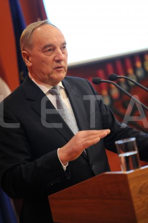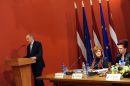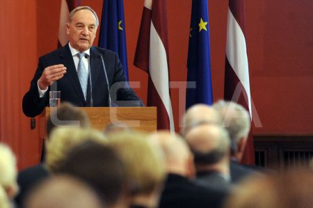 Latvijas Valsts prezidents Andris Bērziņš uzrunā klātesošos ...