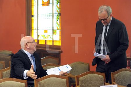 Eiropas Parlamenta deputāti Ivars Godmanis (no kreisās) un Roberts ...