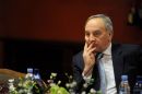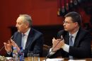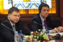 Finanšu ministrs Andris Vilks (no kreisās), ārlietu ministrs Edgars ...