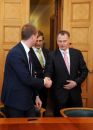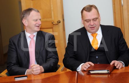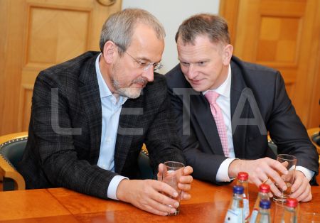 Līdzšinējais Ministru prezidents Valdis Dombrovskis un Saeimas ...